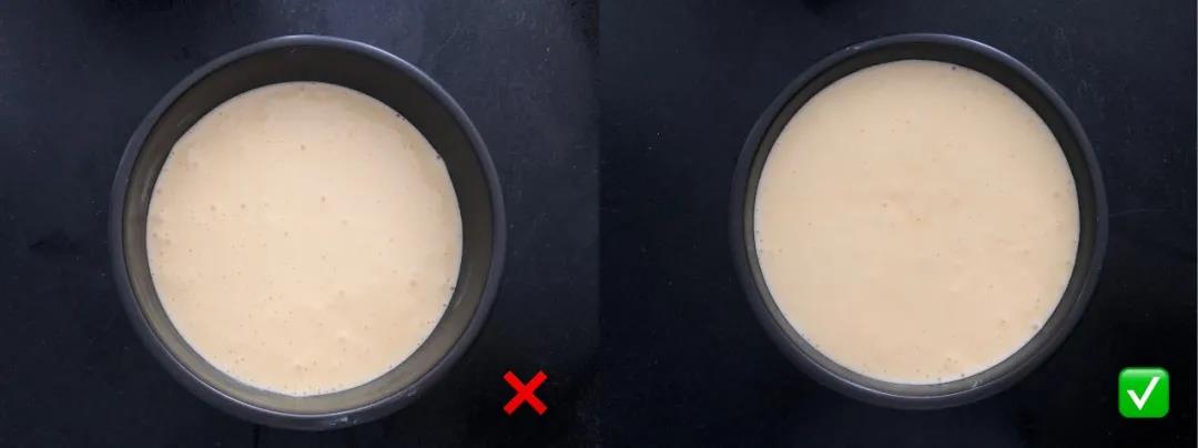 (√)蛋糕漿部分是缸體的七至八分滿