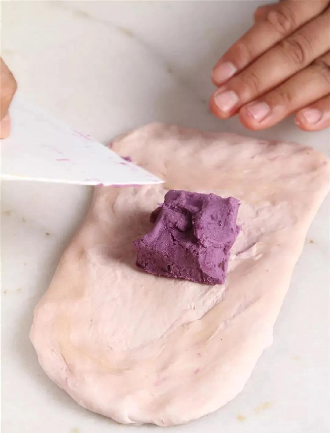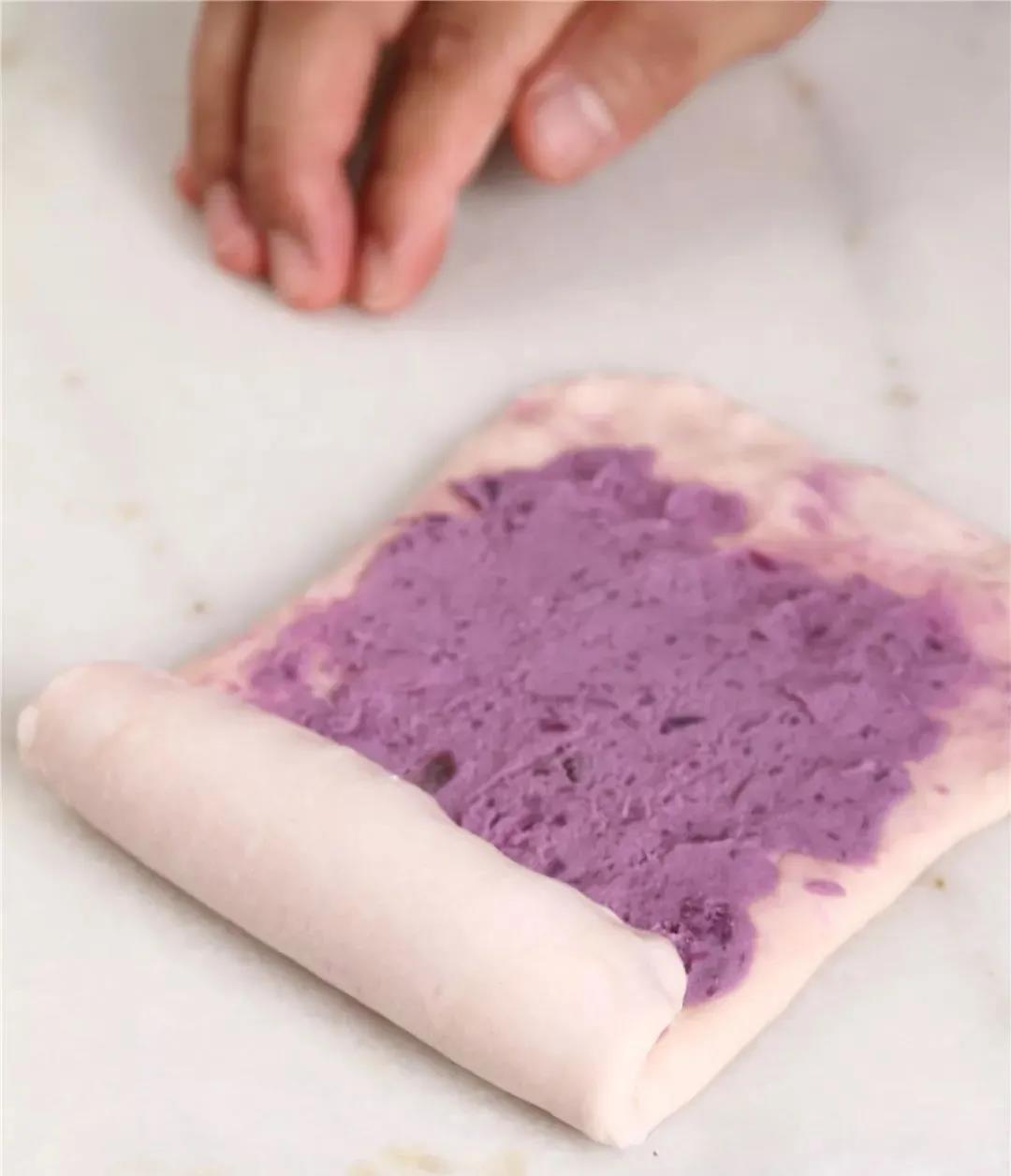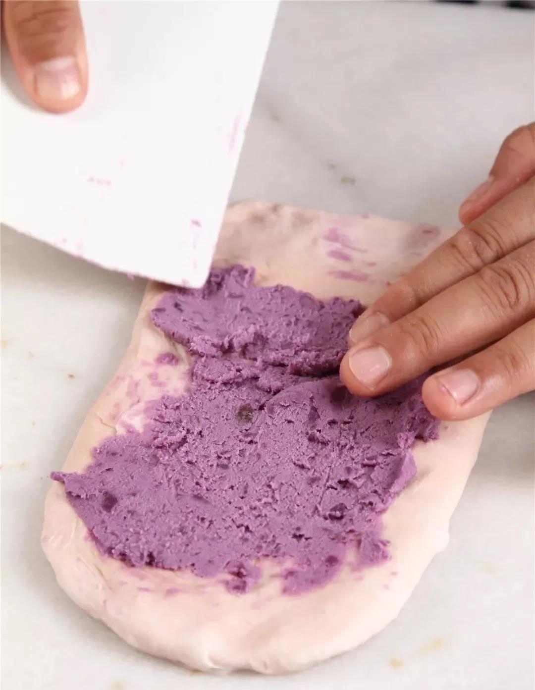 5.抹上30g熟紫薯泥。