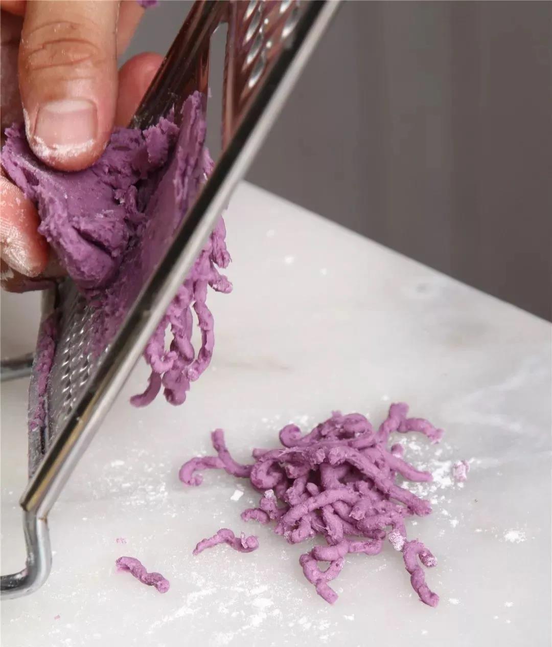 9.然后將21g熟紫薯刨成絲備用。