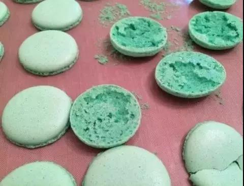 馬卡龍面糊烘烤后,塌陷,面糊之間會(huì)相連,完全不成形的情形。