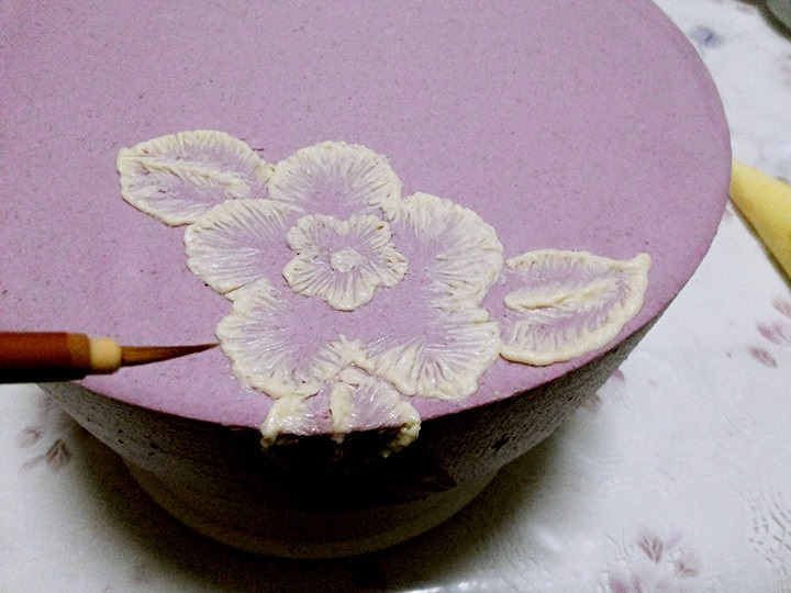 當(dāng)然,從之前的奶油霜,到現(xiàn)在的豆沙,用了豆沙制作的 花卉整個(gè)外形擺放 會(huì)更加持久。