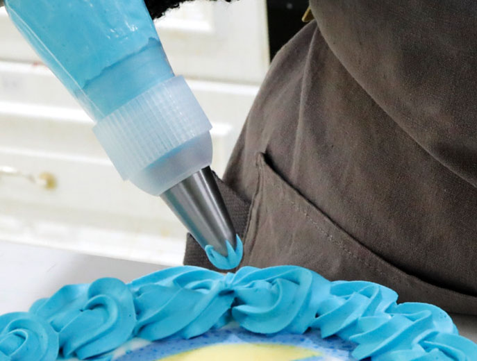 裱花袋:透明塑料袋制成的裱花袋,既方便又能識(shí)別顏色,屬于一次性使用的工具。